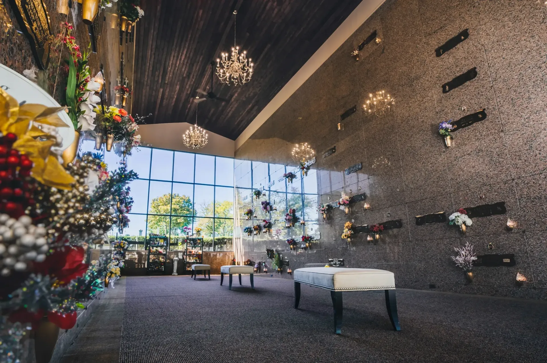 Alpine Cemetery features many beautiful gardens, monuments, and fountains. The meticulously landscaped and manicured grounds provide a peaceful setting, where families and friends visiting loved ones can meditate and pray